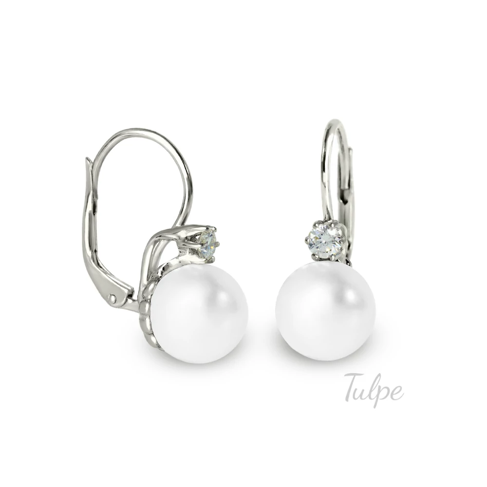 | Klasszikus gyöngy fülbevaló gyémánttal. Hagyományos patent zárral. | |