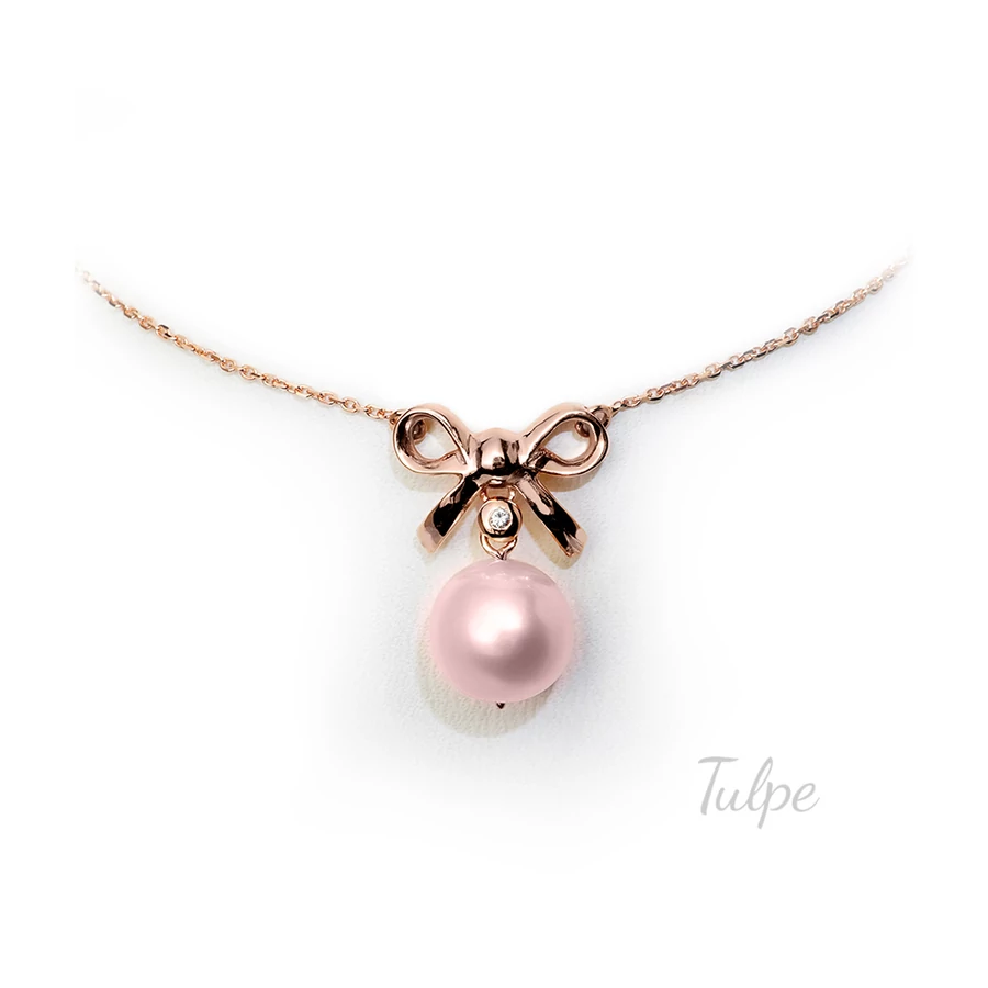 | 10 mm-es rózsaszín gyöngy medál masnival a tetején, melyet egy kis gyémánt is díszít. Választhatod 40, 45 vagy 50 cm-es lánccal. | |